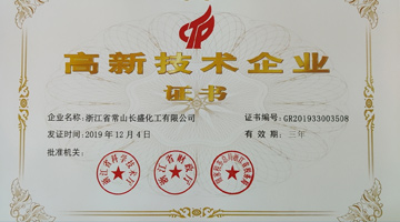 Established in July 1998, Zhejiang Changshan Changsheng Chemical Co., Ltd. is a limited liability company and a private enterprise. At present, our company is located in the Eco-Industrial Park of Changshan County, with a registered capital of CNY 10.5 million, an area of 5,192.8 square meters and 178 employees, including 25 engineers and technicians.